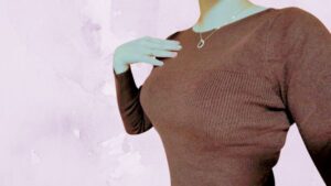 タイトめの洋服が好きなのもあり、ピタっとした伸縮性があるニットを選びました。